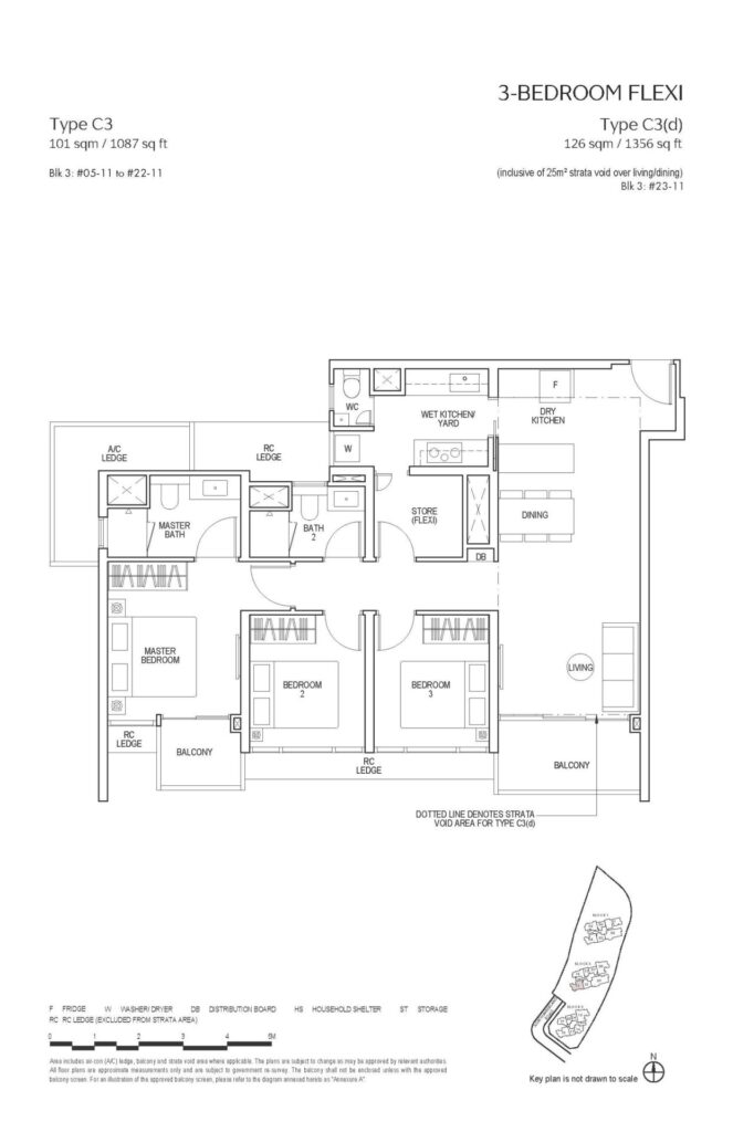 3-Bedroom Flexi - Type C3 (1087sqft)