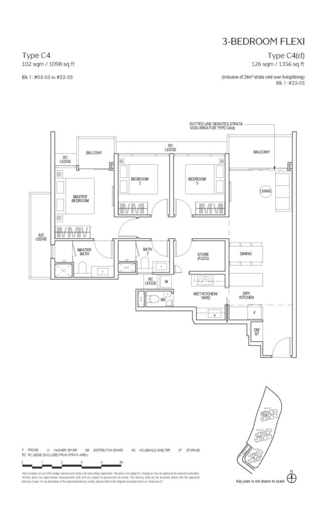 3-Bedroom Flexi - Type C4 (1098sqft)